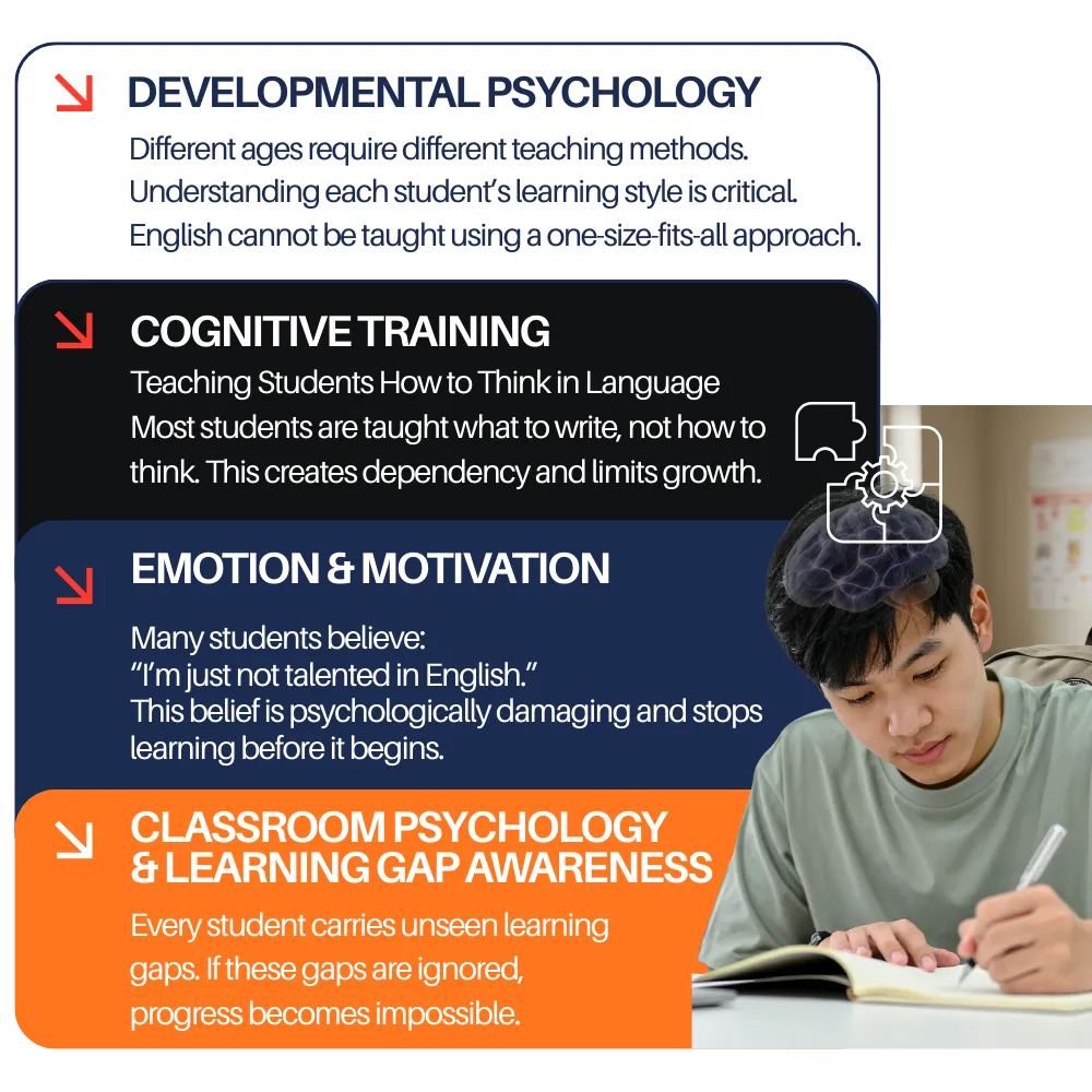 A clear, actionable plan showing how to rebuild your child’s English using the Psychology-Based Language Progression Mastery™ Method.